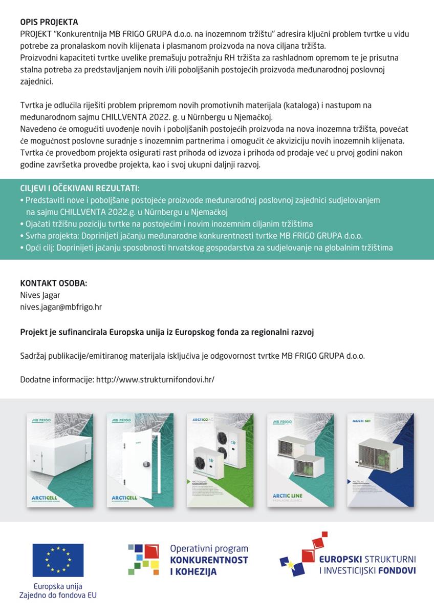 KONTAKT OSOBA: Nives Jagar nives.jagar@mbfrigo.hr